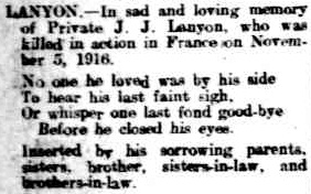 Killed in Action November 5th, aged 22. Remembered: Villers-Bretonneux Memorial