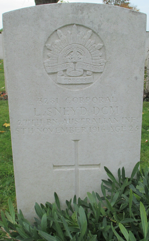 This is Leslie's headstone in Warlencourt British Cemetery. Taken by: Leeta Rutherford